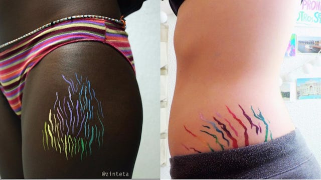 Artist Cinta Tort Cartró paints women’s stretch marks in rainbow colors to promote self-love