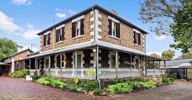 According to the listing, the mansion was built by William Uren in the 1800’s who “chose this foothills location for its fertile soil and beautiful creek setting. A viewing deck atop the second story of the home allowed William to see the ships arriving at Port Adelaide” where he could watch out for his leather goods he was importing. So, skin-suit it is. Cool Alice Cooper picture, though.
