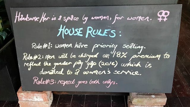 The cafe, which describes itself as “a space for women, by women,” erected a blackboard in front of its door listing a few house rules. Between “respect goes both ways” and “women have priority seating” is Rule #2, which has the internet solidly divided.