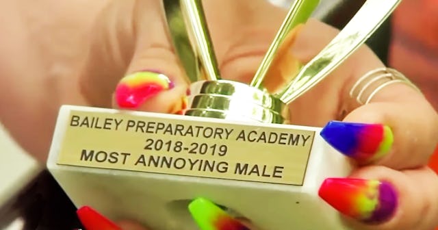 Castejon was at the awards luncheon and saw the award being given out. He said afterward, he tried to just leave the trophy, which is literally engraved with “Most Annoying Male,” on the table, but the teacher chased him and his son down to remind them to take it home with them.