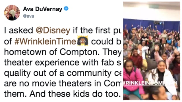 Ava DuVernay, the director of A Wrinkle in Time, asked Disney if the first public screening of her movie could be in her hometown. There are no movie theaters in Compton, and DuVernay was determined to let her hometown kids enjoy the full theater experience.