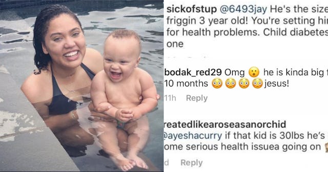 One commenter suggested Curry put her young son on a diet. According to People, the since-deleted remark read “maybe portion-control his food a bit.”