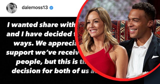 Clearly, though, things weren’t as “happily ever after” as they seemed. Over the last few days, Clare and Dale have been seemingly breaking up, with all the messy details of their split playing out publicly on Instagram. Bachelor (and Bachelorette) Nation, are you ready for this tea?