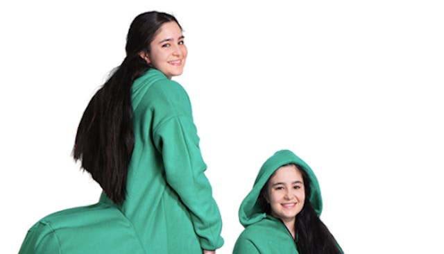 The Bean Bag Onesie is available in “Gumby Green” and is made of a cotton and polyester mix (and it’s filled with polystyrene balls, natch). It’s available in sizes small through 3XL and should be hand-washed and left to air dry.