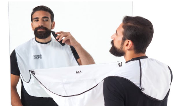 Introducing the ‘Beard Bib’ — a hair tarp, if you will, that goes around a man’s neck and attaches to the bathroom mirror with suction cups, catching all beard trimmings that fall. The geniuses behind the bib are the folks at Beard King, who came up with the product as a way to solve the messy situation that is facial hair maintenance.