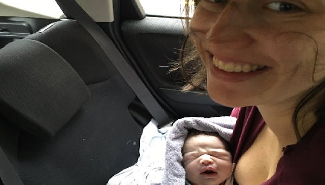 Beth, who also has a son, described her unexpected car birth to Scary Mommy. “The contractions weren’t as long or as intense as I was led to believe they should be when I should head to the hospital,” she told us. “My doula arrived just as we were getting off the phone with our midwife and decided it was time to leave. And just as she arrived my water broke and contractions got really intense. We only made it a few minutes down the road. I was so glad to have my doula in the back seat with me. And honestly I was so happy and relieved that the labor was over I didn’t care at all that it had happened in the car.”