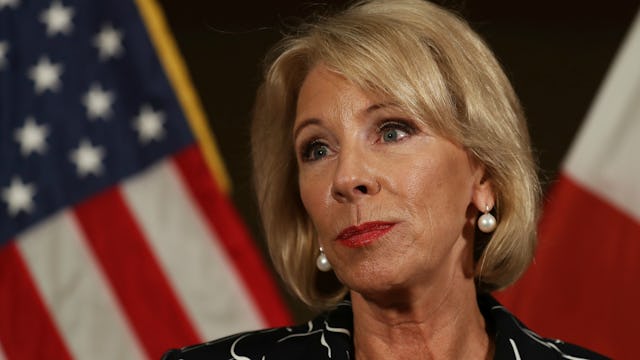 In answers to the small handful of questions she allowed to be asked, DeVos skirting around addressing any sort of gun policy that she could help push or endorse. Overall, this whole charade was an insult to the survivors of the Parkland shooting and the students all over the country who are working to actually stop gun violence against kids. Our politicians have to do better — the kids are demanding that they do better. But they’re still not stepping up.