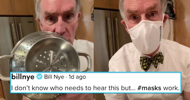 It’s absurd the “mask debate” continues this far into a global pandemic even though nearly every member of the scientific and medical community has agreed they help fight the spread of the coronavirus. Still, here we are. National treasure Bill Nye reappeared on TikTok this week to try, yet again, to show people who still believe that masks are ineffective that they are, in fact, wrong.