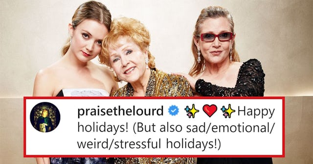 Billie Lourd lost her mom, Carrie Fisher, and her grandma, Debbie Reynolds, simultaneously three years ago over the holidays. She definitely understands better than most the mixture of emotions — both highs and lows — that can hit home this time of year. Her heartfelt message on Instagram is meant for anyone grieving the loss of someone they love through the holiday season.