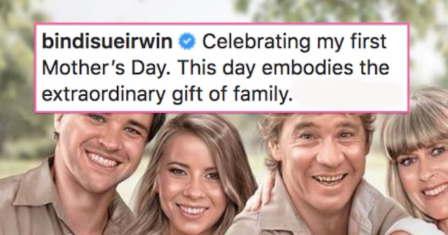 Bindi Irwin is celebrating her first Mother’s Day, a day filled with joy, but for those who have lost a parent, the day — like most holidays — can be bittersweet. Though Bindi’s late father Steve Irwin would presumably be thrilled to become a grandfather, Bindi honored her father the best way she could, with a sweet piece of artwork that imagines her entire family celebrating Mother’s Day together.