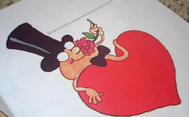 Now, let me say that this book is a very child-centered, no-nonsense approach to reproduction. It makes it clear that all of this happens between a husband and a wife and the people in the book are not drawn to look like super models. They are somewhat zaftig, which I thought was a great idea. I mean, why set the kid up for disappointment. As we read, I went from embarrassed to uncomfortable to pretty proud of myself. I had actually put aside my own discomfort and stepped up to the plate.