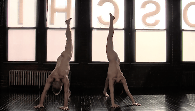 Here’s Schwarz and fellow co-owner Monica Werner showing off their naked yoga talents and Greek god physiques.