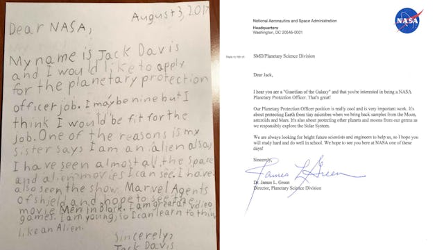 Writing a cover letter for any job is one of the most agonizing tasks for job applicants. Multiply that pressure by a billion light years if you’re applying for NASA’s new job as Planetary Protector Officer. That’s literally the weight of the whole universe on your shoulders. But if you’re 9-year-old Jack Davis, no sweat. You nail it.