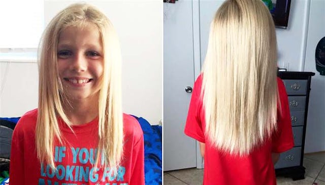 He had a buzzcut when he started, but two years later he had some long, glorious locks. He reached his goal of donating over 10 inches in four ponytails. He donated to the “Children with Hair Loss” foundation. His mother says on her Facebook page that he has ” endured an awful lot of criticism, and yes even bullying, throughout this time.” Some kids teased him for “looking like a girl,” and coaches and family friends told him to cut it — some even offering him money. But his mom says he “never once strayed from his goal and always took the time to educate others on why he made the choice to grow his hair.” Thomas says she got used to hearing, “your daughters are so pretty!”