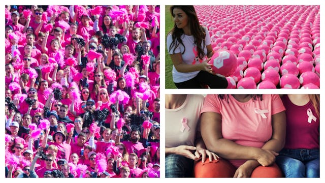 They call it “pinking.” In 2015, the New York Times notes, the White House went pink for Breast Cancer Awareness Month in October. Ford sold “pink warrior” decals. In one of the most questionable cancer awareness moves in the history of cancer awareness, police used pink handcuffs. Basically, this October, like every October, will bowl us over in a tidal wave of pink, a stranglehold of pink ribbons, everything plastered with “Save the Ta-Tas” decals, in the name of breast cancer awareness.
