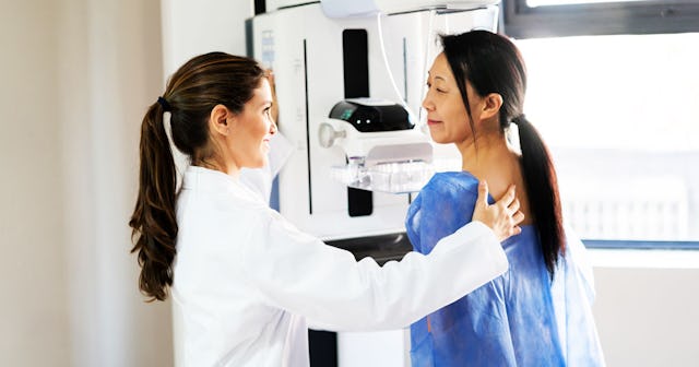 There are several risk factors for breast cancer. The top two, according to Dr. Malik, are aging and being female at any point. She adds that this means a cisgender woman, transgender man who underwent puberty as a woman, or transgender man on hormones. One of the nonmodifiable factors that puts someone at risk of breast cancer, she says, is family history of premenopausal breast cancer, a known genetic mutation, family history of male breast cancer. Someone who is Black or of Ashkenazi Jewish descent, someone who has a “history of large doses of chest radiation,” started their period earlier than age 12, or started menopause after age 55 are also at a greater risk.
