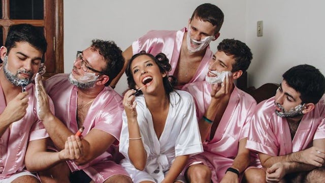 We have to say, we’re pretty touched by the friendship between this group and the love these guys have for Rebeca is clear. It looks like no one hesitated to throw on a pink silk robe and ham it up for the camera if it meant being there for their best friend’s big day.