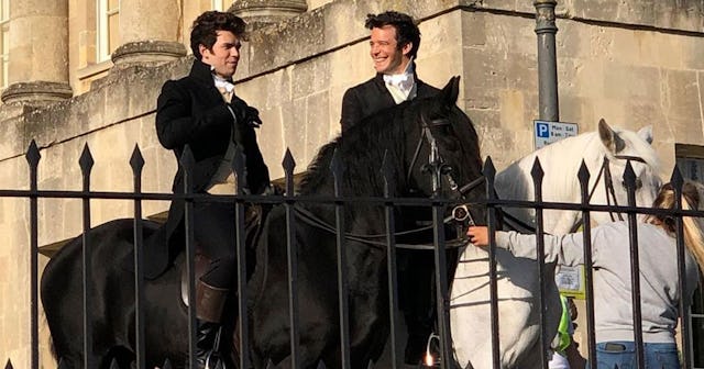 Newton, who plays Colin Bridgerton, took to Instagram with a gift for the fans of the show: A series of photos that are little sneak peeks into the filming of Season 2. The first photo shows him and Jonathan Bailey, who plays Lord Anthony Bridgerton, on horseback. That’s followed by a photo of Bailey and Luke Thompson, who plays Benedict Bridgerton, in their full regency era costumes, looking like they’re goofing around on set. You love to see it.