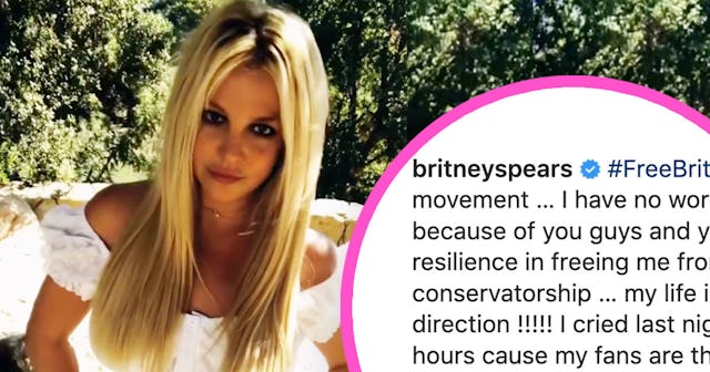 After 13 harrowing years under the control of her family, Britney Spears is finally on the road to freedom. While her strange and heartbreaking case has made headlines in recent months and years for all kinds of reasons (not the least of which being Brit’s own harrowing testimony about what she’s endured), the #FreeBritney movement has been at the center of it all, researching and raising awareness for years before it all came to a head in 2021. And on her Instagram, Spears just gave a sweet shout out to her fans in the movement.