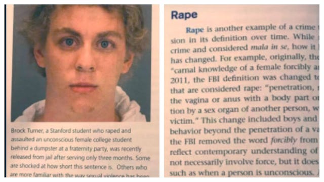 College textbook uses Brock Turner’s mugshot next to the definition of rape