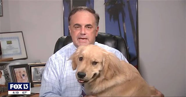 As workers across the country are being forced to do their jobs from the safety of their homes, on-air news reporters are having a tricky time. One young anchorwoman was interrupted when her shirtless dad walked into frame, another meteorologist had to deliver the weather next to his yapping dog, and now Paul Dellegatto, a chief meteorologist for FOX 13 in Tampa Bay, has joined the ranks of remote news report bloopers. Dellegatto’s very good dog, Brody, decided he wanted some pets during dad’s broadcast and so, he went and got ’em.