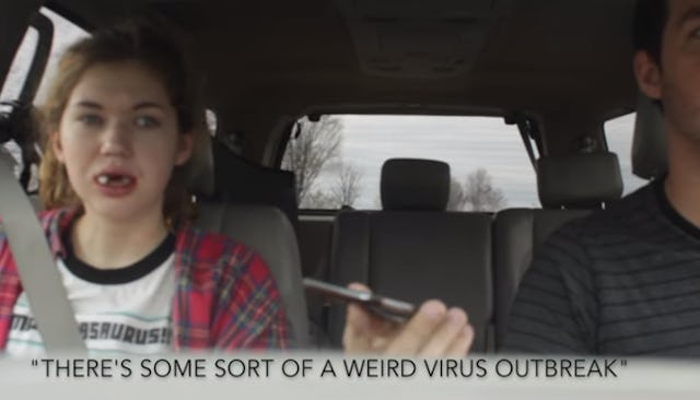 On the car ride home, Cabot starts the gag by playing a fake warning from the CDC that there’s an outbreak involving cannibalism. She listens intently, absorbing the information and then exasperatedly tells her brother that he’s driving “like a slug” and to get to the house.