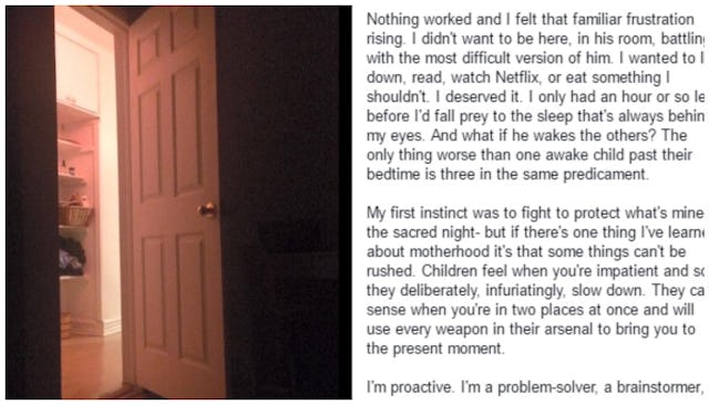 For parents, bedtime is sacred. Our children’s bedtime, that is. It’s the time of day where we can finally do the things we want to do without tiny hands and voices beckoning us. That’s why a recent viral post from a mom who’s been there is striking a chord with parents. Because we’ve all been there.