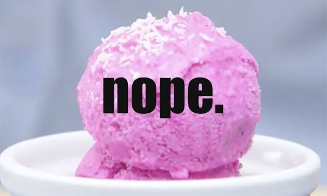Look, if you want non-dairy ice cream there are so many ways to get it now. Coconut ice cream is freaking delicious. You can actually freeze a banana and stick it in a food processor and not end up with the blasphemy of food you see above. Cauliflower tastes like cauliflower no matter what the hell you do to it — and you’ll never convince me it doesn’t.