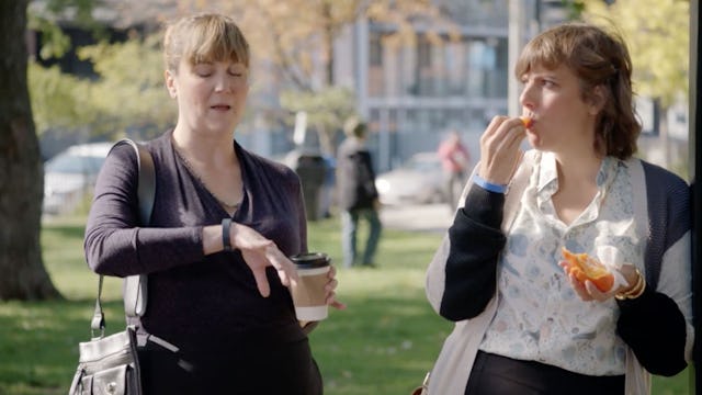 She tries to hit up her other co-workers, but it turns out they all have their own versions of Fitbit that they live their lives by — like the “Fatbit,” which tracks how often society body shames you, and “Fuckbit,” which dictates when you need to get down and dirty. Oh yeah, and there’s also a “Funbit,” which tells you when you needs to drink an entire thermos of wine (again, hi, that’s something I could definitely get behind).