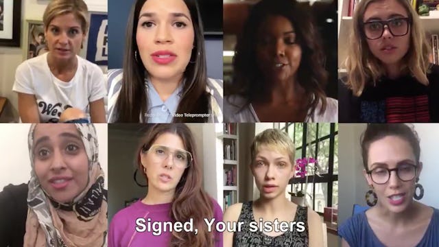 The video features actresses America Ferrera, Julianne Moore, Gabrielle Union and others joined by leaders and activists Paola Mendoza, Sarah Sophie Flicker, Monica Ramirez, Ai-jen Poo, Piper Perabo and Reshma Saujani — to express their solidarity with Dr. Christine Blasey Ford.