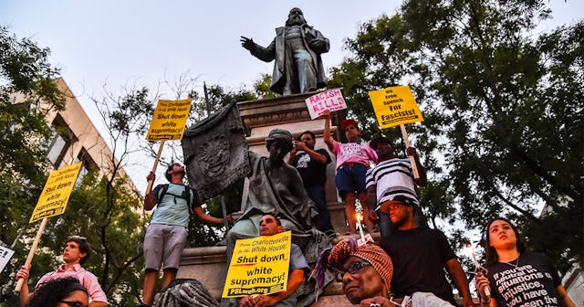 Almost four long years after a “Unite the Right” rally that ended in one death, the statues of Confederate generals Robert E. Lee and Thomas “Stonewall” Jackson have been removed from Charlottesville, Virginia. Kick down that particular roadblock on memory lane — four years of The Orange One’s blatant white supremacy may have helped you forget, America, or maybe you never wanted to remember in the first place. Recap: the Charlottesville City Council voted to remove the Confederate statues. White people across Virginia lost their collective shit, because Heritage Not Hate (code for: Black Erasure), and neo-Nazi scum staged a rally full of vitriol and swastikas. One moral invertebrate drove his car through a group of counter-protesters, killing Heather Heyer and wounding 19 others.