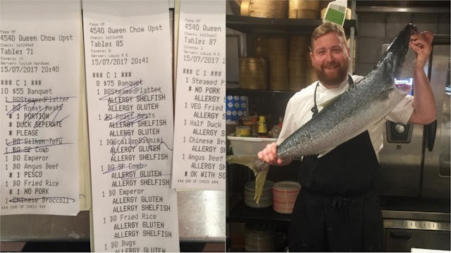 Chef Patrick Friesen, who works at Queen Chow in Enmore, Australia, is on a crusade to make this a thing that people realize. He recently took to Instagram to post a photo of a stack of receipts, all of which have some crazy food allergies specifications that clearly aren’t legit.