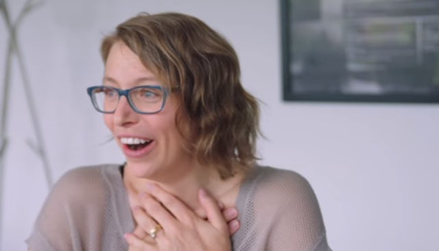 OK, back to business. The HR rep sits her down and she thinks she’s going to hear about her job performance, but instead, he plays a video with people in her life telling her she’s doing great. As both an employee and a parent.