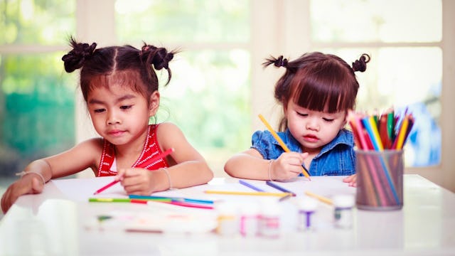 During story time, another girl jumped up and looked out the window behind the teacher. Charlotte followed suit and I saw the backs of these two toddlers, on tippy toes, staring out the window.