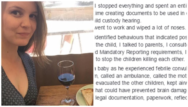 A childcare worker’s open letter to a clueless politician has gone viral, with good reason. In it, she outlined every thing she does – paid and unpaid – in her line of work.