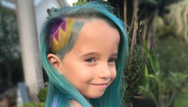 And honestly, is crazy-colored hair really the worst thing you can allow your kid to do? If it makes them feel amazing and unique, what’s the harm? None, that’s what. Imagine a kid like Lyra looking back as an adult and remembering that time her mother let her have rainbow hair with a shave up one side. A fond memory and it makes her mom seem like the ultimate Cool Mom. Everyone wins.
