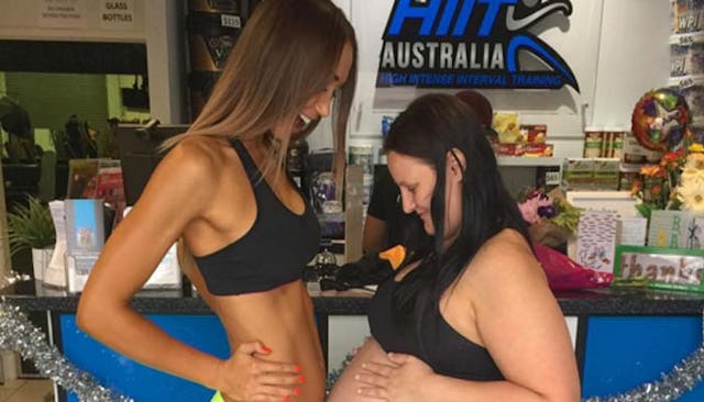 Every pregnant body is different – and the shape and size of that body really says nothing about whether one mom is “healthier” than the next. Fitness model decided to make this point by posting a photo of herself and a good friend standing belly-to-belly during their pregnancies.