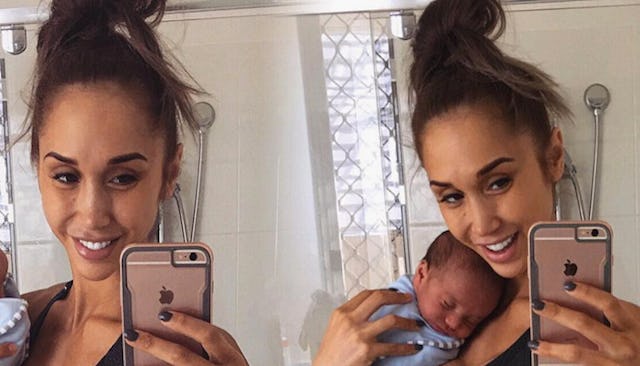 A few days ago, she shared a selfie holding Jeremiah to let her followers know how her c-section incision is healing. In it, she’s standing in workout gear and cradling her son as he lifts his head off of her chest.