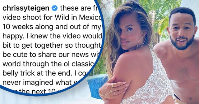 “I was 10 weeks along and out of my mind happy. I knew the video would take a bit to get together so thought it would be cute to share our news with the world through the ole classic hand on belly trick at the end. I could have never imagined what would happen over the next 10 weeks,” Teigen wrote.