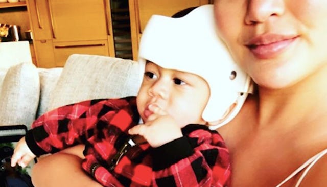 Teigen tweeted yesterday afternoon that her six-month-old son Miles was going to be fitted for a helmet to help combat his flat head. It’s a condition known as plagiocephaly, and it’s pretty common in infants, but she wanted her fans to know that he’s totally fine.