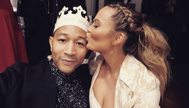 John Legend got in on the action, donning his own custom “Baby Daddy” crown. Behind him, you can see other guests have crowns too. Maybe they each got to make their own, which is a way more fun shower activity than guessing the mom’s belly size or sniffing chocolate bars melted inside diapers. Sorry — it just is.