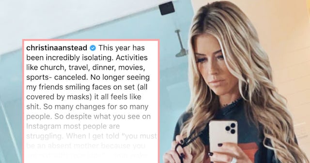 “This year has been incredibly isolating,” she wrote. “Activities like church, travel, dinner, movies, sports- canceled. No longer seeing my friends smiling faces on set (all covered by masks) it all feels like shit. So many changes for so many people. So despite what you see on Instagram most people are struggling.”