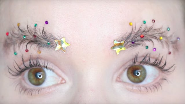 Christmas tree brows are actually much easier to pull off than they look. All you need for some fabulously festive brows is a little glue and some stick on gems.