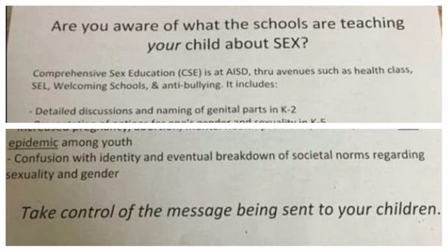 It’s an amazing training program for teachers, but one that will no longer be offered to schools in AISD. A small but vocal minority of parents have come out against it. They call themselves the Concerned Parents of Austin. Here is an example of a recent flyer that was peppered throughout neighborhoods in the district, opposing the Welcoming Schools curriculum.