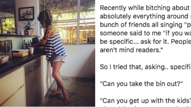 If you’ve ever lived with another person, you’ve inevitably fought about who’s pulling their weight more around the house. If you have kids, chances are higher (read: 100%) you’ve had this argument with your partner because there is so much more to do. One blogger perfectly captures what it feels like when you are the one who feels as if they are doing, well, everything.