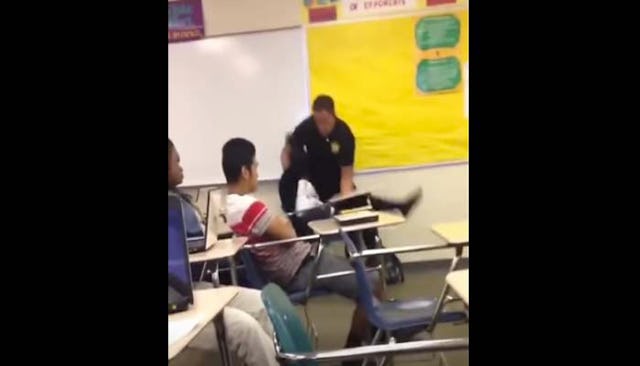 According to local officials, the student was confronted by Sr. Dpt. Ben Fields, a 34-year-old officer on loan from the Richland County Sherriff’s Department. The student was asked to leave the classroom, and when she refused, the actions in the above video unfolded. “The student was told she was under arrest for disturbing school and given instructions which she again refused,” Richland County Sheriff Leon Lott told WISTV. “The video then shows the student resisting and being arrested.”