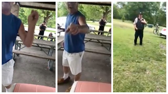 In a now-viral video, a cop is seen refusing to help a woman who is being relentlessly harassed by an angry white man in a public park. The angry man gets in the woman’s face repeatedly, raises his voice, and the woman begs for help — all while the cop stands in the background, looking on.