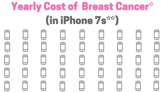 One year of breast cancer treatment would cost 80.9 iPhones.