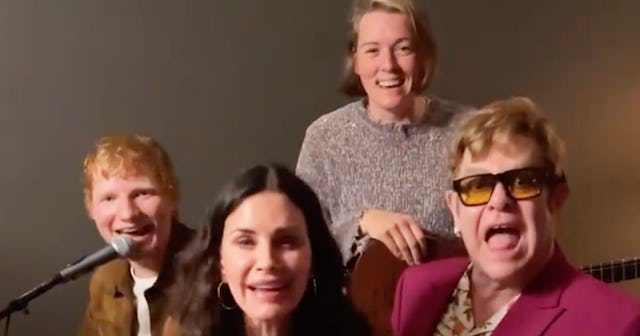 Courteney Cox gathers Ed Sheeran and Elton John to sing the Phoebe version of “Tiny Dancer” and it’s everything