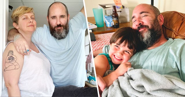 Matt and I bumped into each other on OKCupid back in 2014 and have been going at warp speed through the full-blown realities of family life ever since. Both of us have been through rough divorces and have endured abuse at different points in our lives. Our hearts were aching for a new chapter, and we quickly found it together. Matt had a daughter from his first marriage who started calling me “stepmom” about a month in, and our honeymoon period lasted a measly seven weeks, because I got knocked up much quicker than either of us had anticipated.